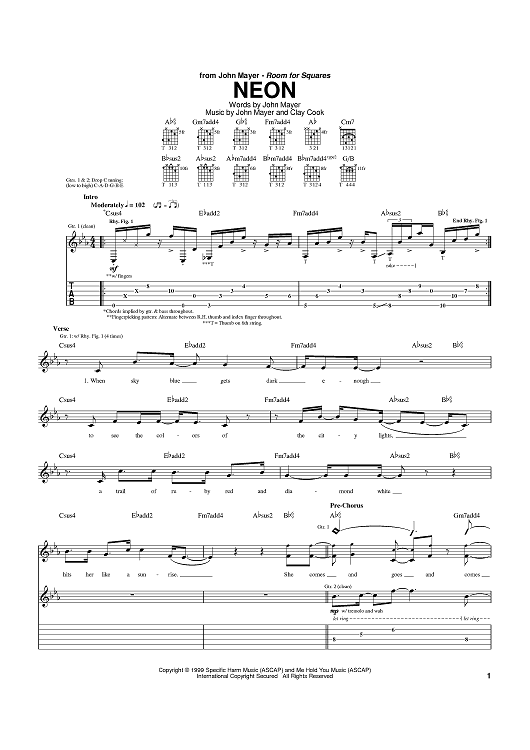 Digital Sheet Music for Neon by Clay Cook, John Mayer scored for Guitar Tab; id:371472