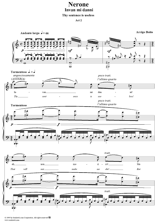 Digital Sheet Music for Nerone, Invan mi danni, (Thy sentence is useless) by Arrigo Boito scored for Voice/Piano; id:267976