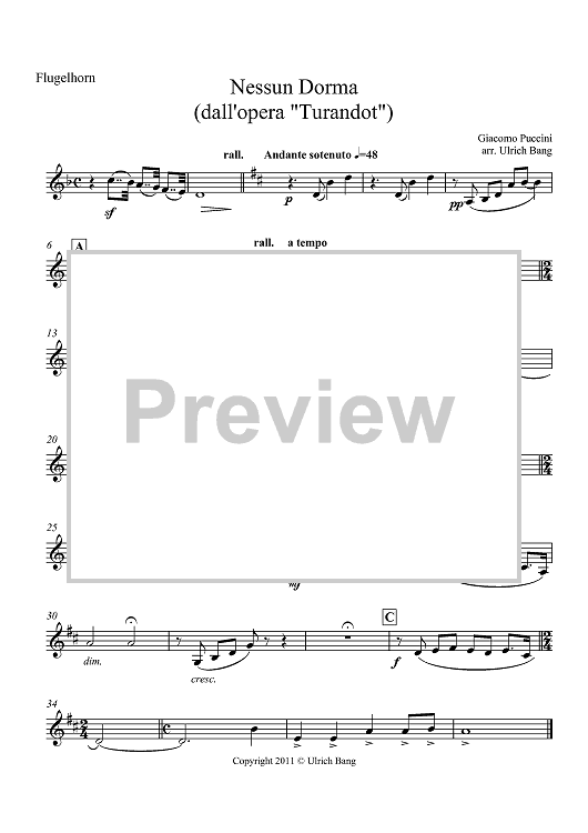 Digital Sheet Music for Nessun Dorma - Flugelhorn by , Giacomo Puccini, Ulrich Bang scored for Brass Ensemble; id:419909