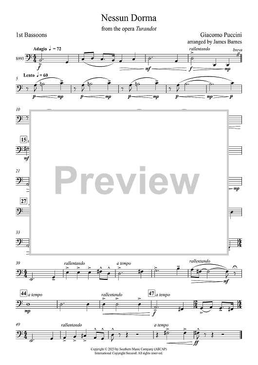 Digital Sheet Music for Nessun Dorma from the Opera Turandot - Bassoon 1 by Giacomo Puccini, James Barnes scored for Concert Band; id:503126