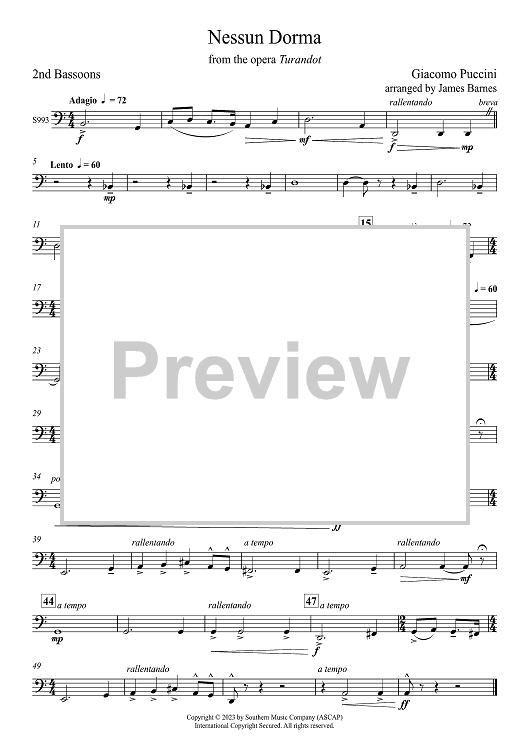 Digital Sheet Music for Nessun Dorma from the Opera Turandot - Bassoon 2 by Giacomo Puccini, James Barnes scored for Concert Band; id:503127