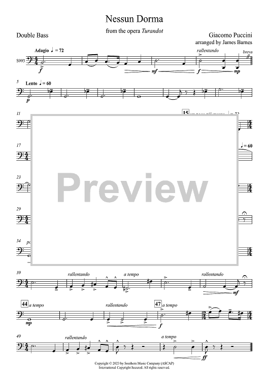 Digital Sheet Music for Nessun Dorma from the Opera Turandot - Double Bass by Giacomo Puccini, James Barnes scored for Concert Band; id:503151