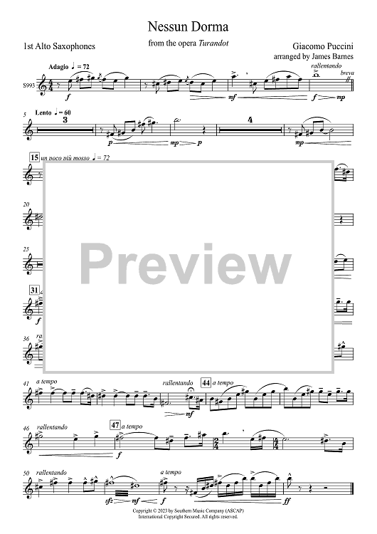 Digital Sheet Music for Nessun Dorma from the Opera Turandot - Eb Alto Sax 1 by Giacomo Puccini, James Barnes scored for Concert Band; id:503134