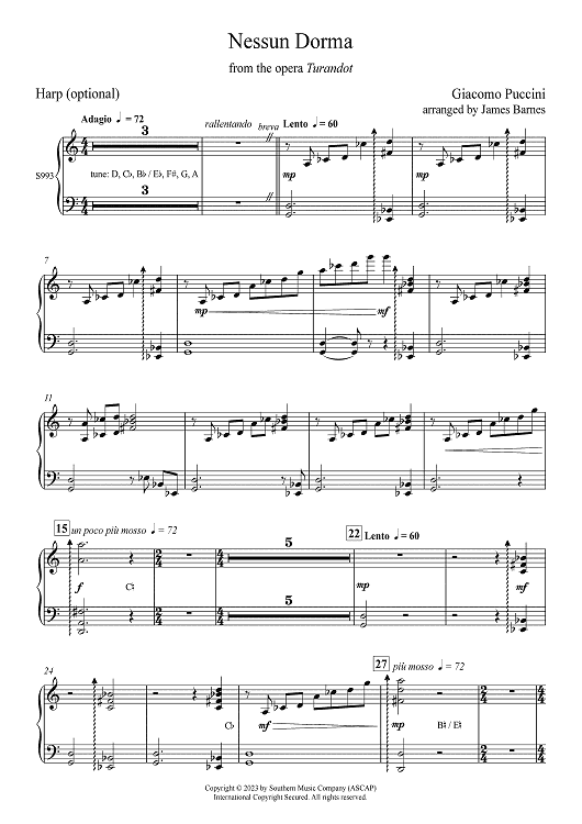 "Nessun Dorma from the Opera Turandot - Harp (opt.)" Sheet Music by Giacomo Puccini