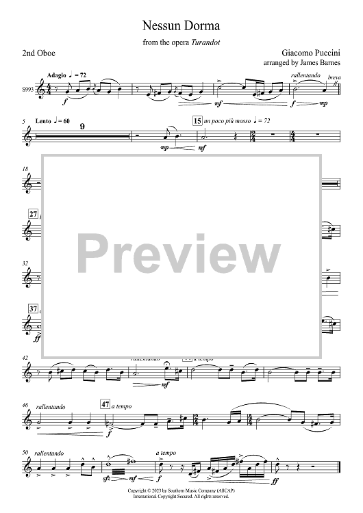 Digital Sheet Music for Nessun Dorma from the Opera Turandot - Oboe 2 by Giacomo Puccini, James Barnes scored for Concert Band; id:503125