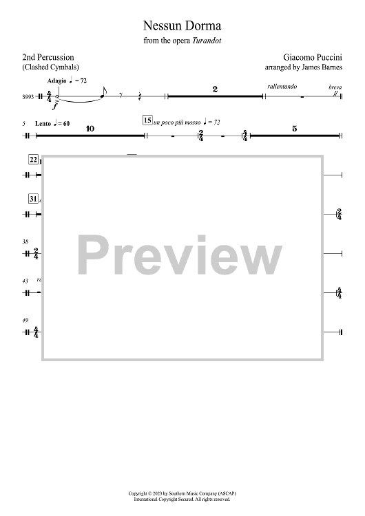 Digital Sheet Music for Nessun Dorma from the Opera Turandot - Percussion 2 by Giacomo Puccini, James Barnes scored for Concert Band; id:503154
