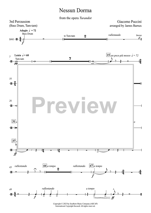 "Nessun Dorma from the Opera Turandot - Percussion 3" Sheet Music by Giacomo Puccini