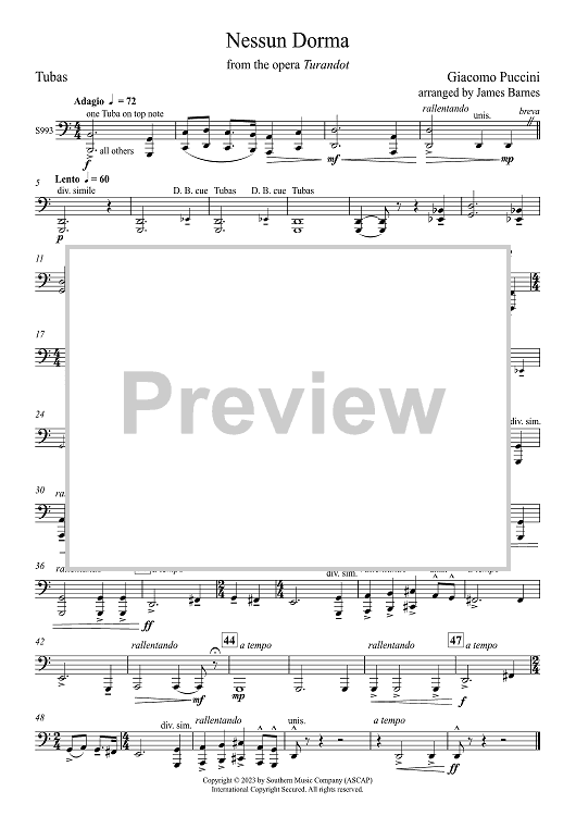 Digital Sheet Music for Nessun Dorma from the Opera Turandot - Tuba by Giacomo Puccini, James Barnes scored for Concert Band; id:503150