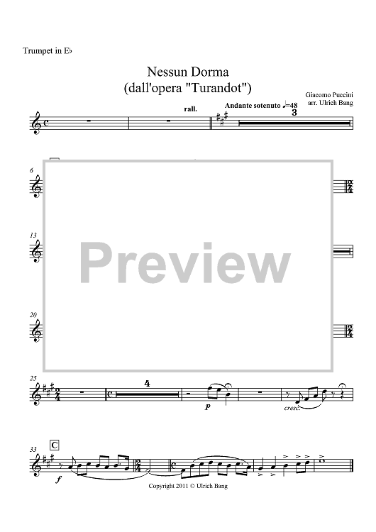 Digital Sheet Music for Nessun Dorma - Trumpet in Eb by , Giacomo Puccini, Ulrich Bang scored for Brass Ensemble; id:419906