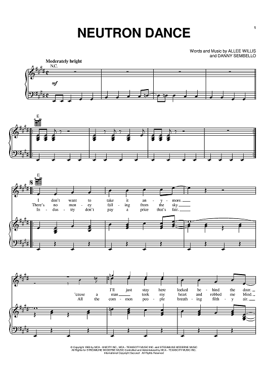 Digital Sheet Music for Neutron Dance by The Pointer Sisters, Danny Sembello, Allee Willis scored for Piano/Vocal/Chords; id:382749