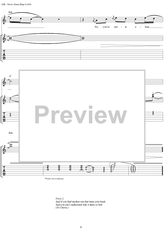 Digital Sheet Music for Never Alone by Vince Gill, Rosanne Cash scored for Guitar Tab/Vocal; id:268379