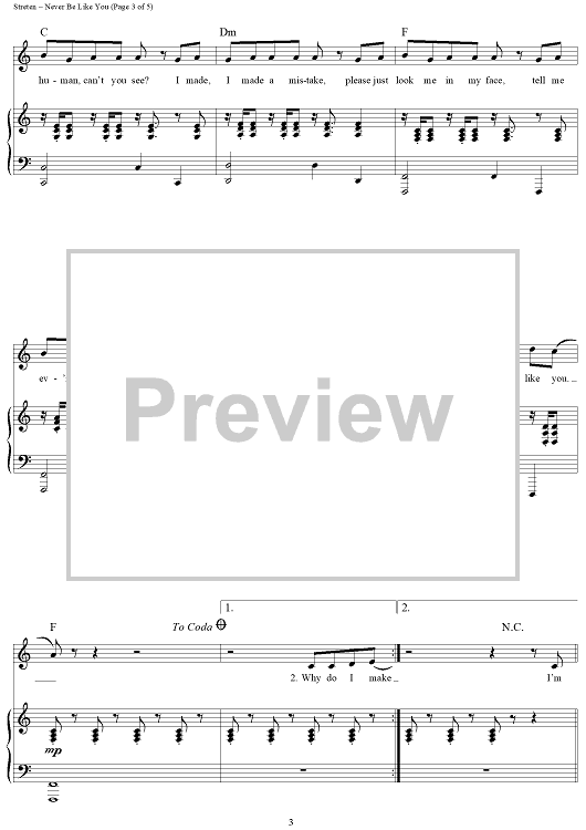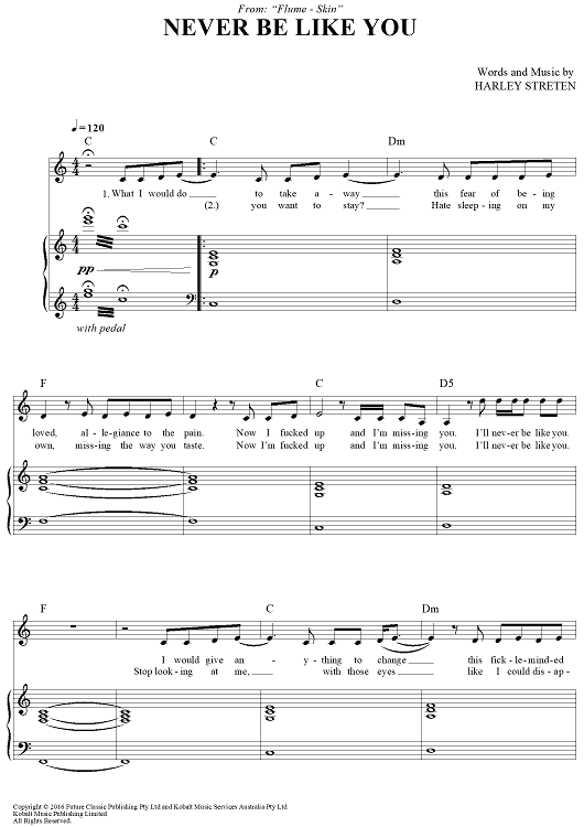 Digital Sheet Music for Never Be Like You by Flume, Harley Streten scored for Piano/Vocal/Chords; id:458964