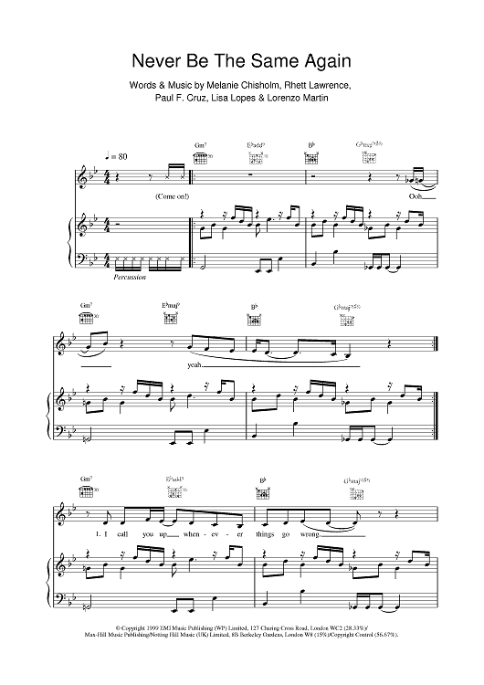 Digital Sheet Music for Never Be The Same Again by Mel C scored for Piano/Vocal/Chords; id:376942