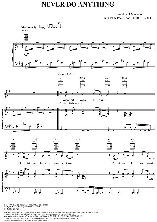 Digital Sheet Music for Never Do Anything by Steven Page, Ed Robertson, Barenaked Ladies scored for Piano/Vocal/Chords; id:286282