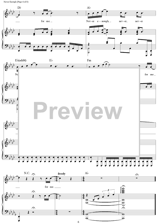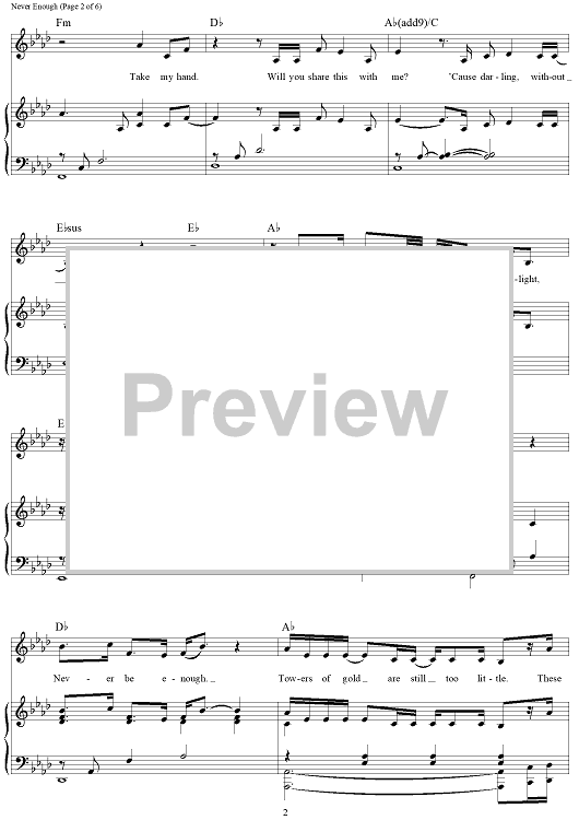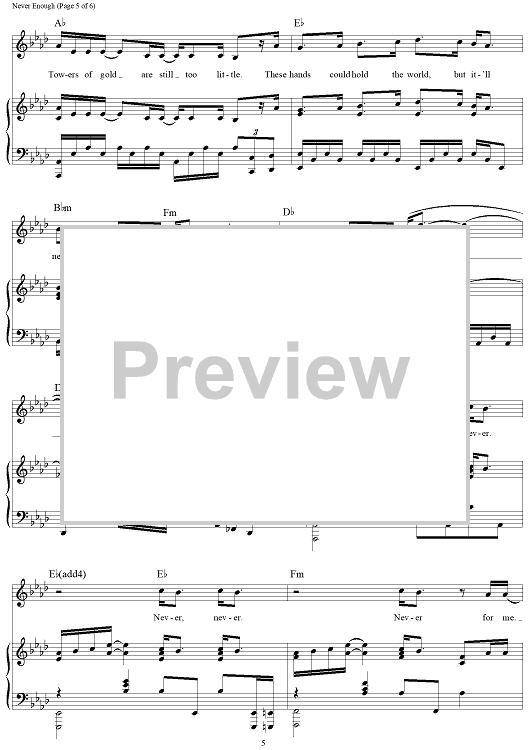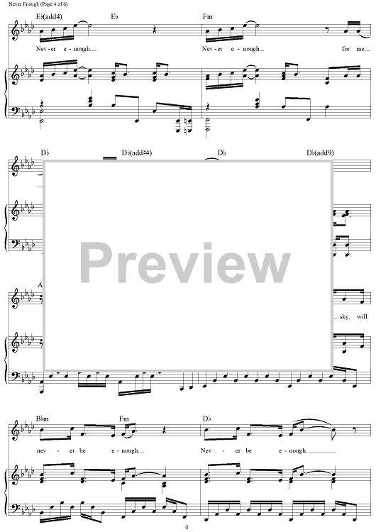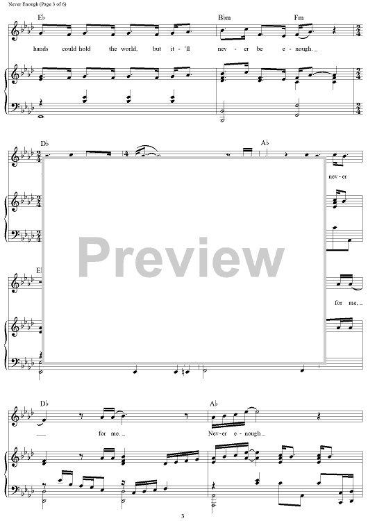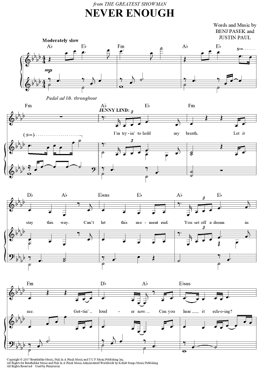 Digital Sheet Music for Never Enough - from The Greatest Showman by Benj Pasek, Justin Paul, Loren Allred scored for Piano/Vocal/Chords; id:465978
