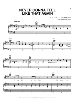 Digital Sheet Music for Never Gonna Feel Like That Again by Kenny Chesney, Paul Overstreet, Phillip Coleman scored for Piano/Vocal/Chords; id:370191