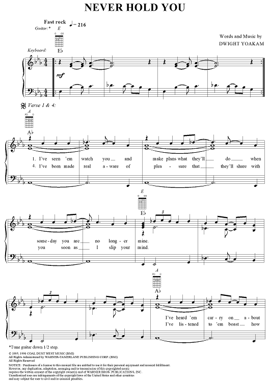 Digital Sheet Music for Never Hold You by Dwight Yoakam scored for Piano/Vocal/Chords; id:262695