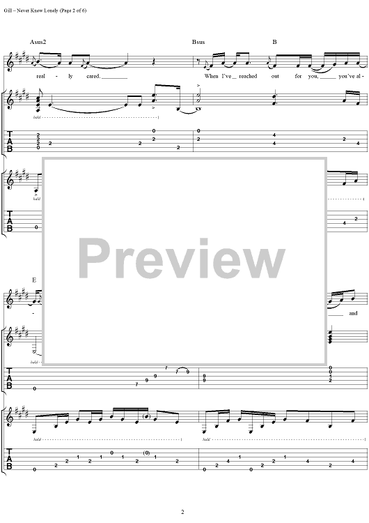 Digital Sheet Music for Never Knew Lonely by Vince Gill scored for Guitar Tab/Vocal; id:113953