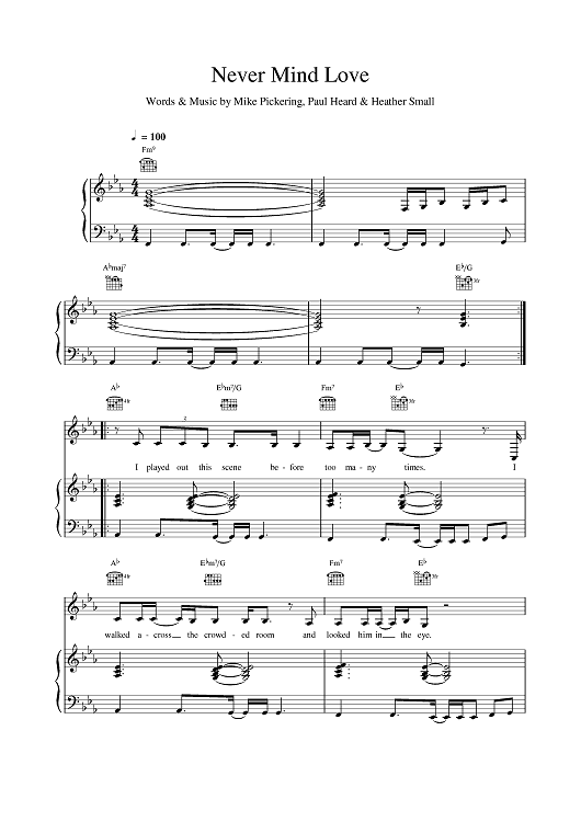 Digital Sheet Music for Never Mind Love by M People scored for Piano/Vocal/Chords; id:376651