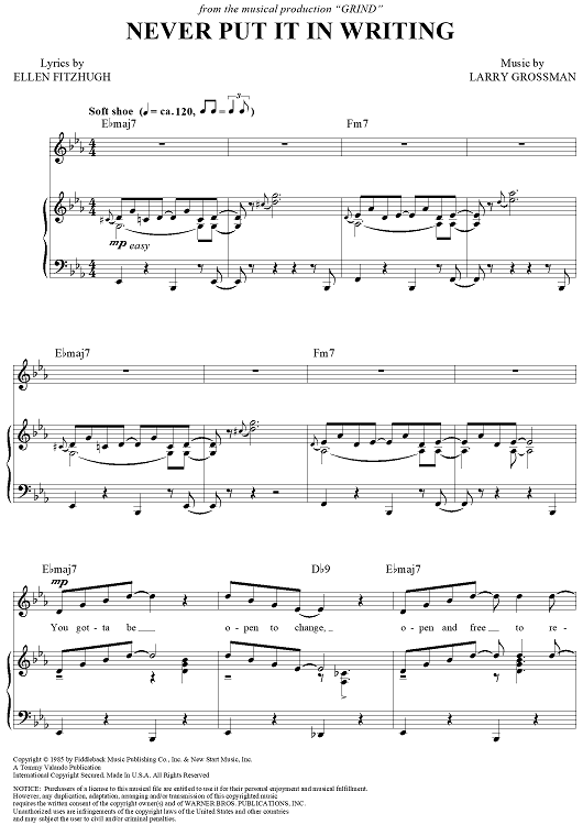Digital Sheet Music for Never Put It in Writing by Larry Grossman, Ellen Fitzhugh scored for Piano/Vocal/Chords; id:314294