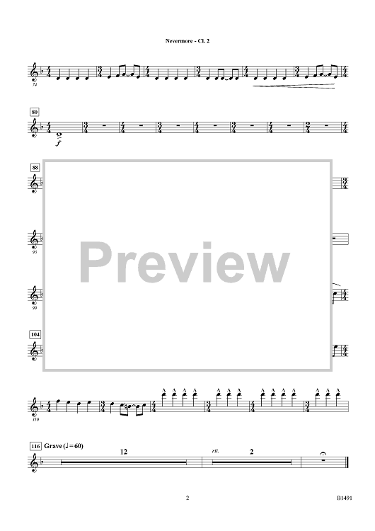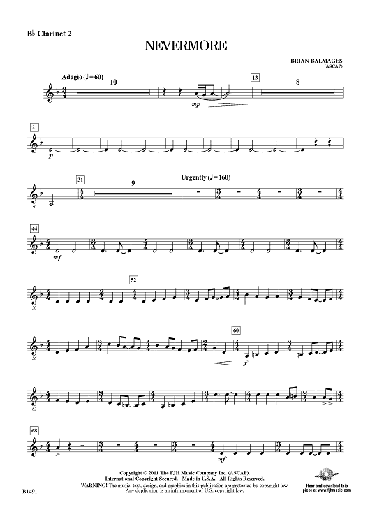 Digital Sheet Music for Nevermore - Bb Clarinet 2 by Brian Balmages scored for Concert Band; id:426224
