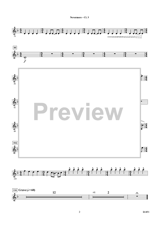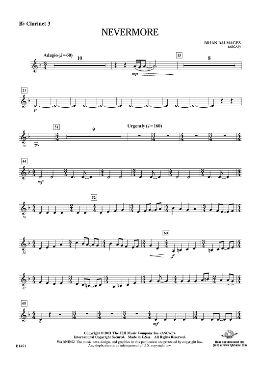 Digital Sheet Music for Nevermore - Bb Clarinet 3 by Brian Balmages scored for Concert Band; id:426225
