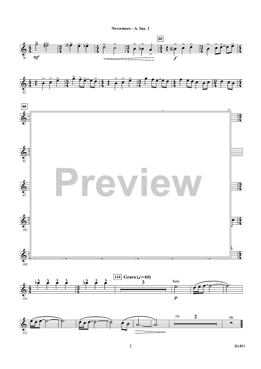 Digital Sheet Music for Nevermore - Eb Alto Sax 1 by Brian Balmages scored for Concert Band; id:426227