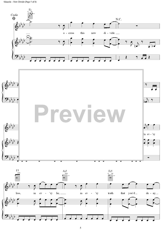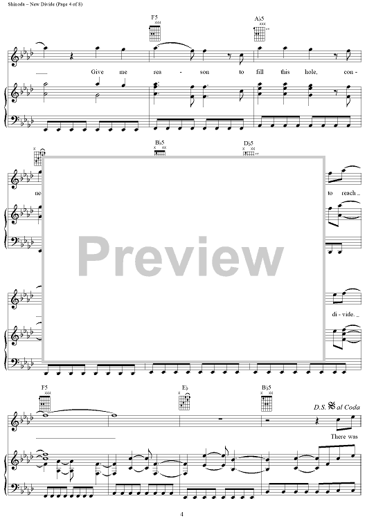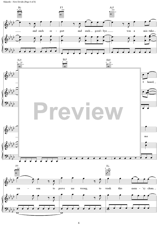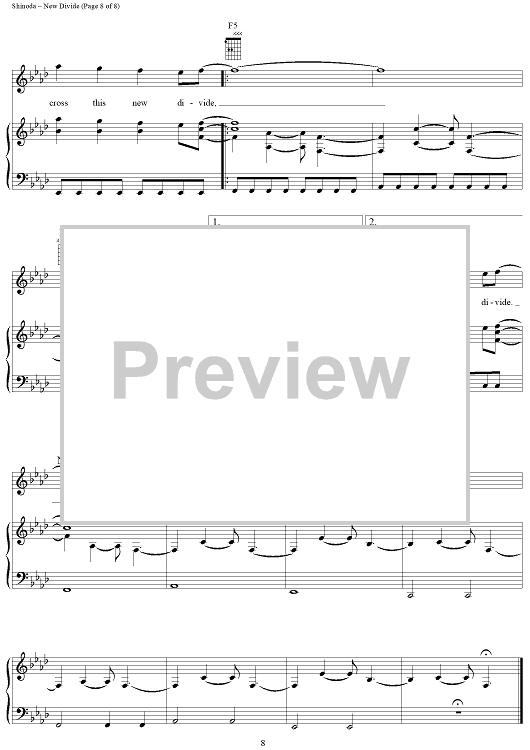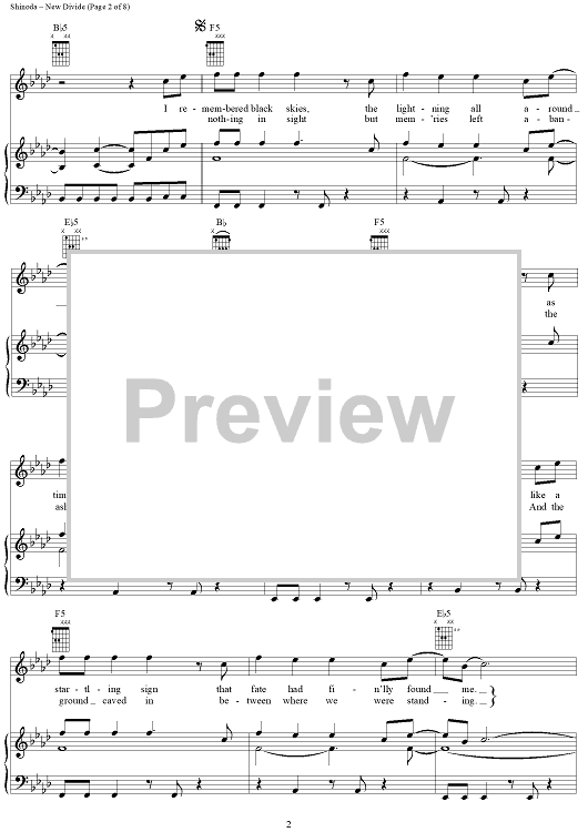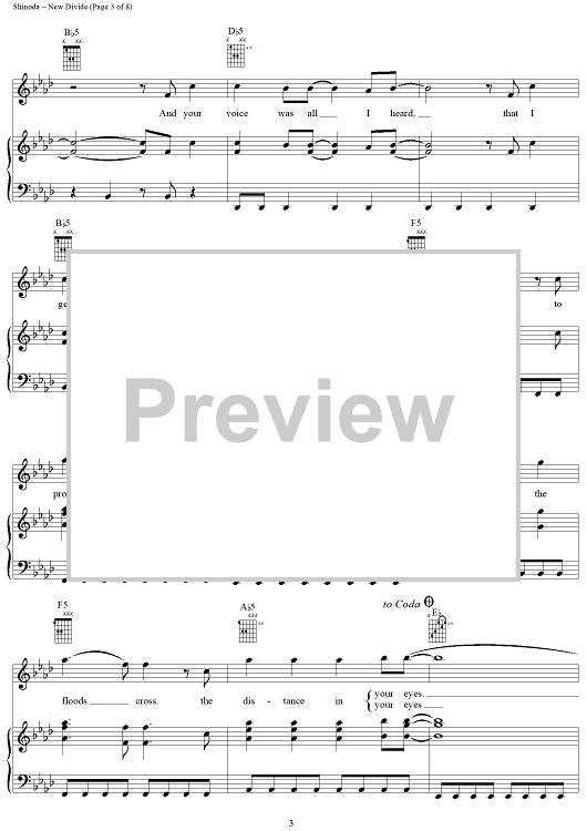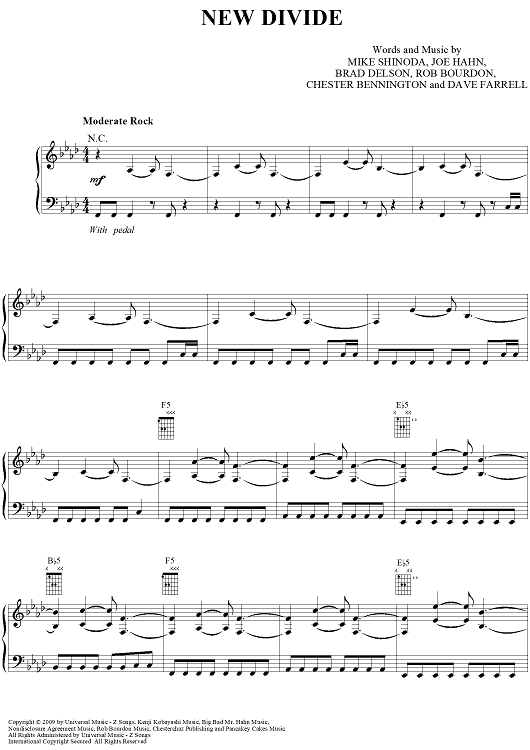Digital Sheet Music for New Divide by Linkin Park, Mike Shinoda scored for Piano/Vocal/Chords; id:406682