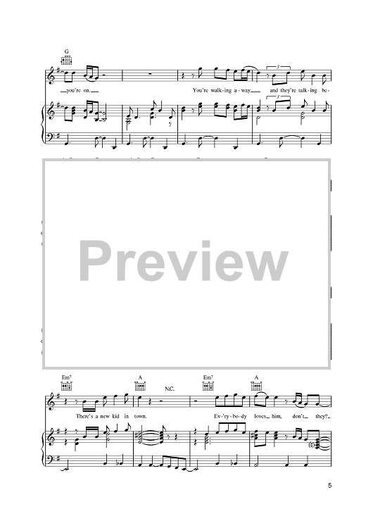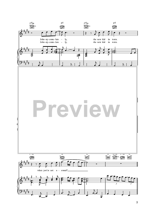 Digital Sheet Music for New Kid In Town by Don Henley, J. D. Souther, Glenn Frey, Eagles scored for Piano/Vocal/Chords; id:387720