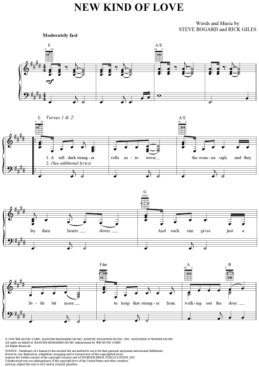 Digital Sheet Music for New Kind of Love by Rick Giles, Michelle Wright, Steve Bogard scored for Easy Piano/Vocal/Chords; id:274585