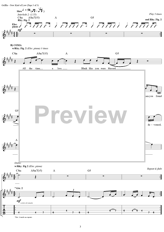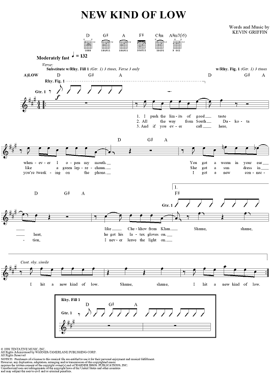 Digital Sheet Music for New Kind of Low by Better Than Ezra, Kevin Griffin scored for Guitar Tab/Vocal; id:113599