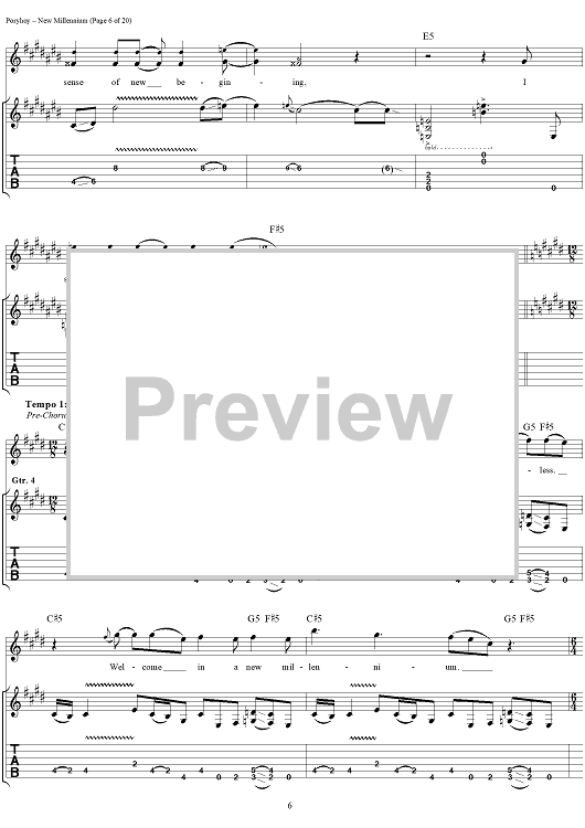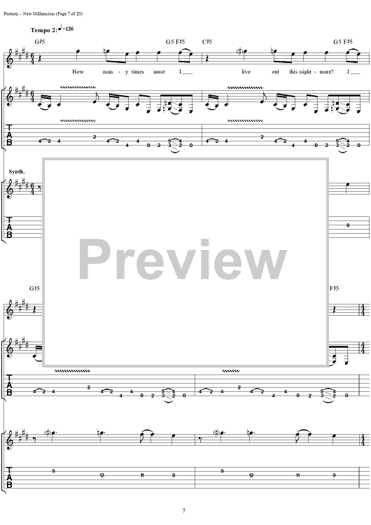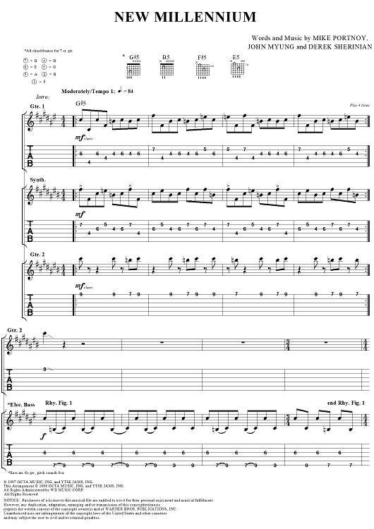 Digital Sheet Music for New Millennium by , John Myung, Derek Sherinian, Dream Theater, Mike Portnoy scored for Guitar Tab/Vocal; id:254969