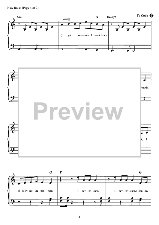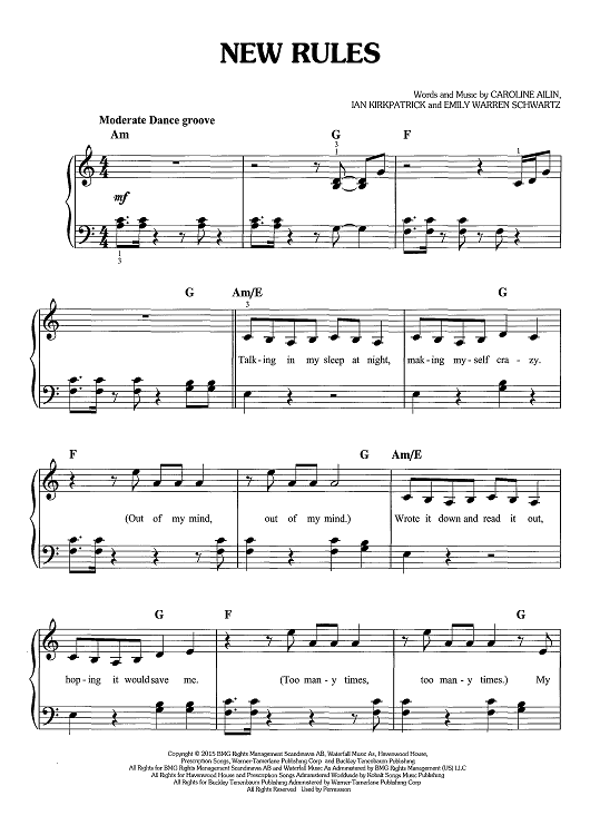 Digital Sheet Music for New Rules by Ian Kirkpatrick, Emily Warren, Dua Lipa, Ailin Caroline scored for Easy Piano/Vocal/Chords; id:466841