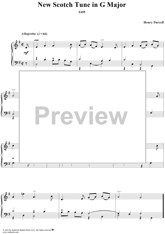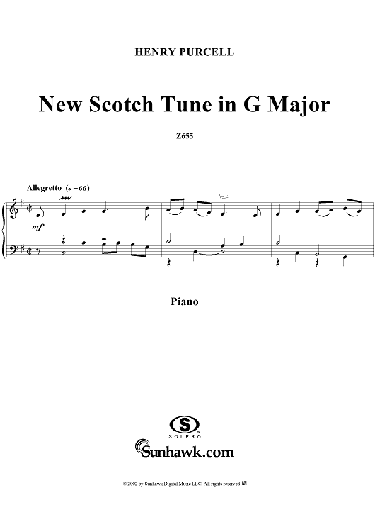 Digital Sheet Music for New Scotch Tune in G Major by Henry Purcell scored for Piano Solo; id:255082