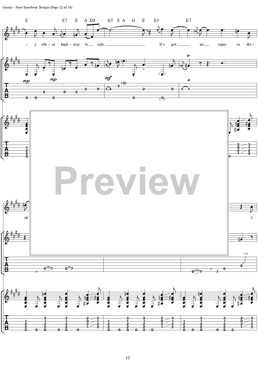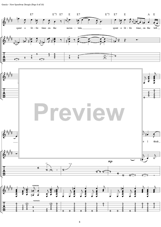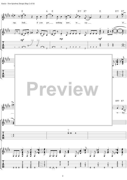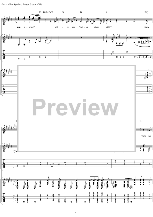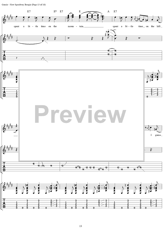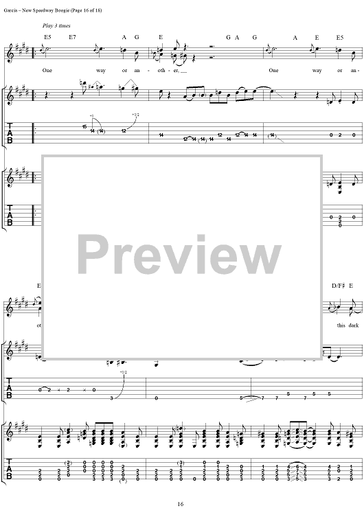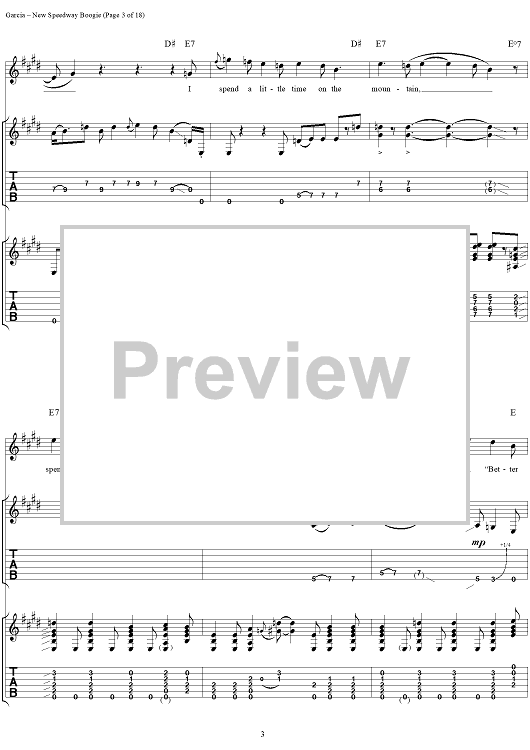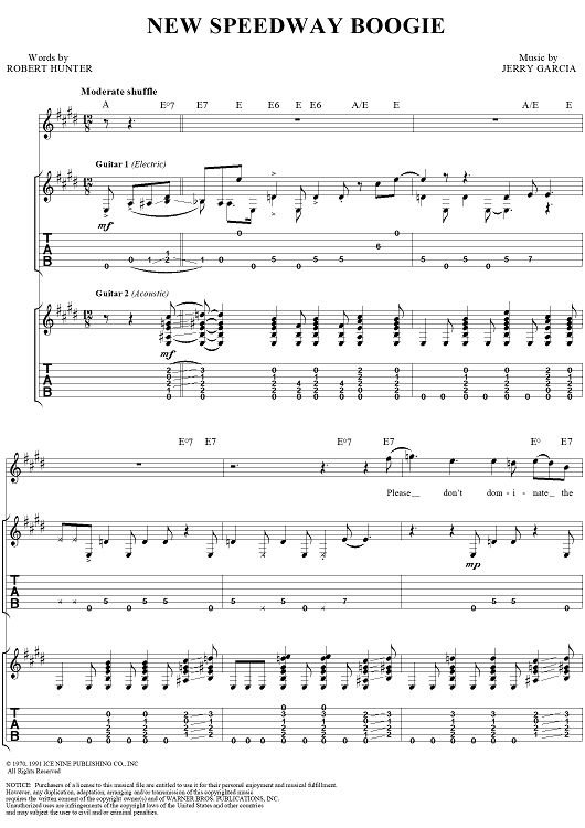 Digital Sheet Music for New Speedway Boogie by Jerry Garcia, Robert Hunter, Grateful Dead scored for Guitar Tab/Vocal; id:114414