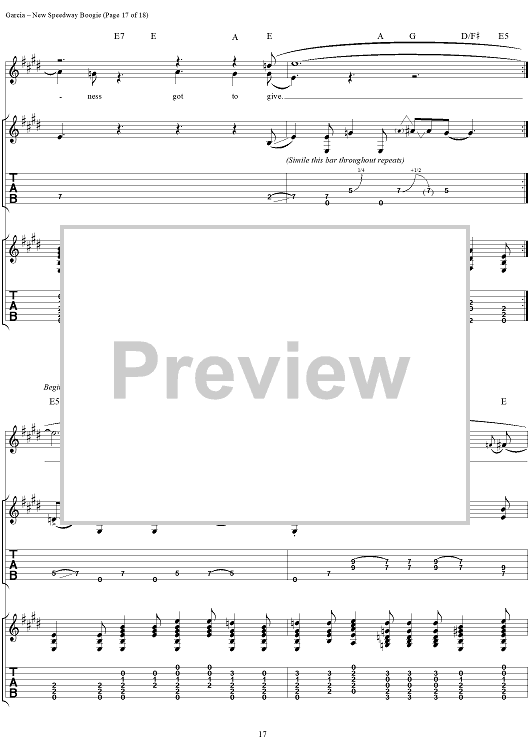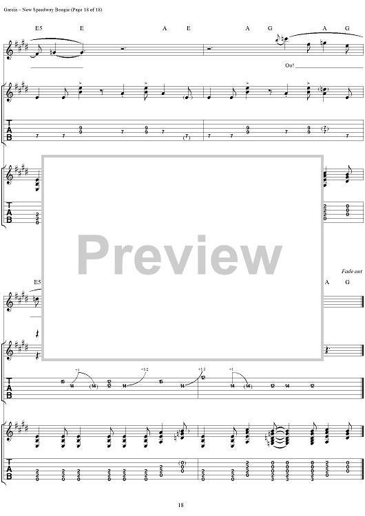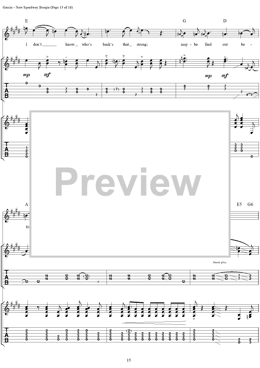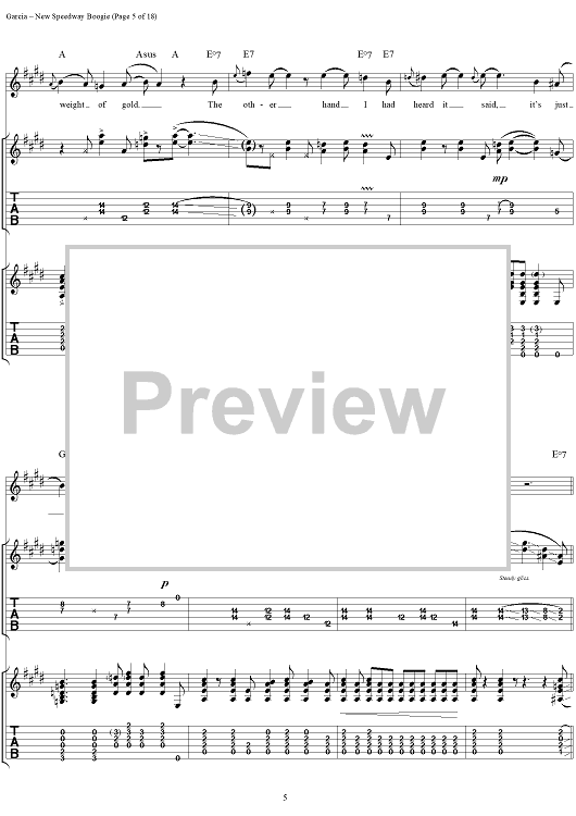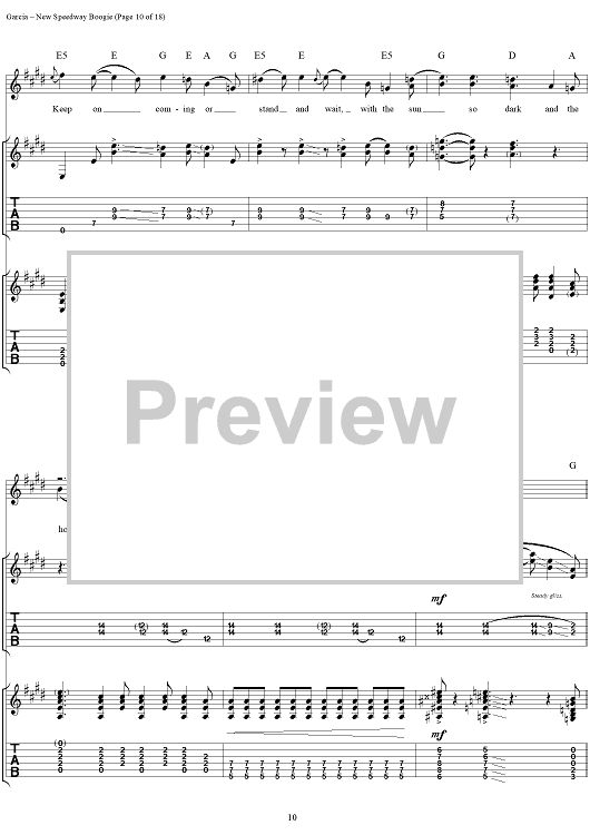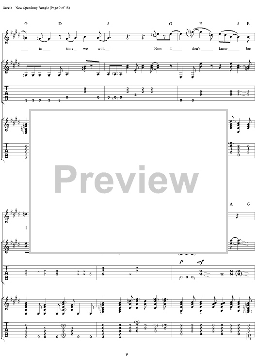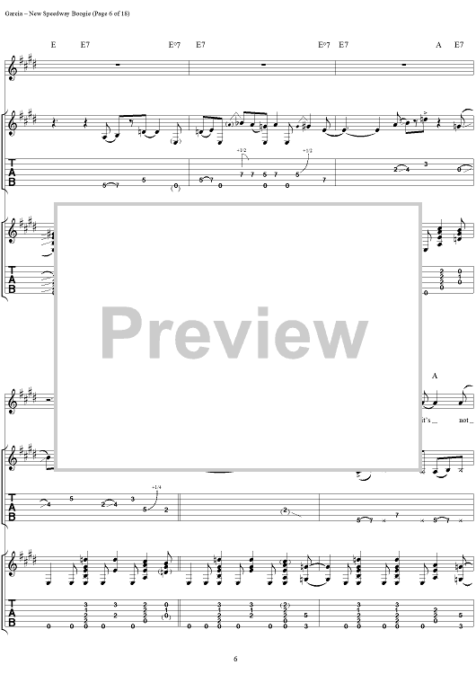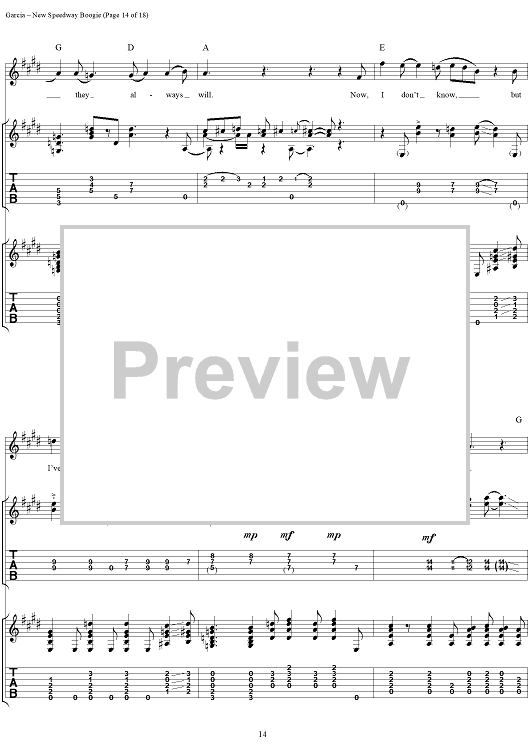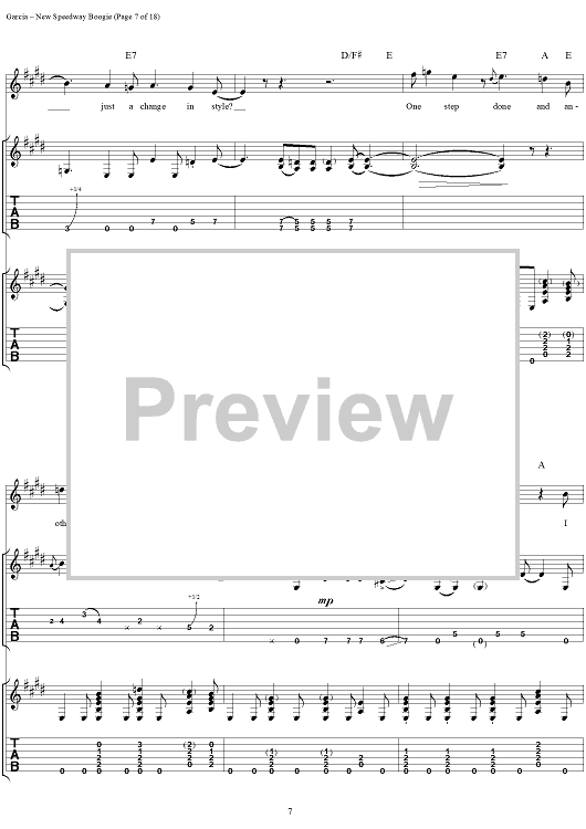 Digital Sheet Music for New Speedway Boogie by Jerry Garcia, Robert Hunter, Grateful Dead scored for Guitar Tab/Vocal; id:114414