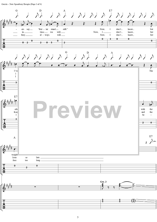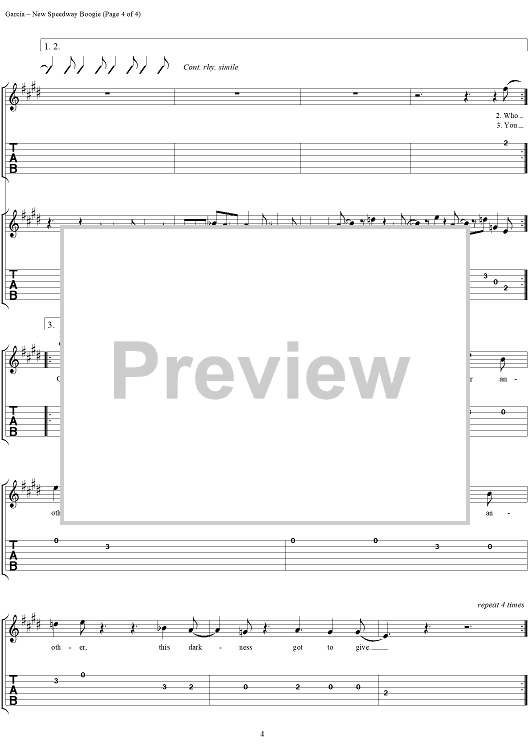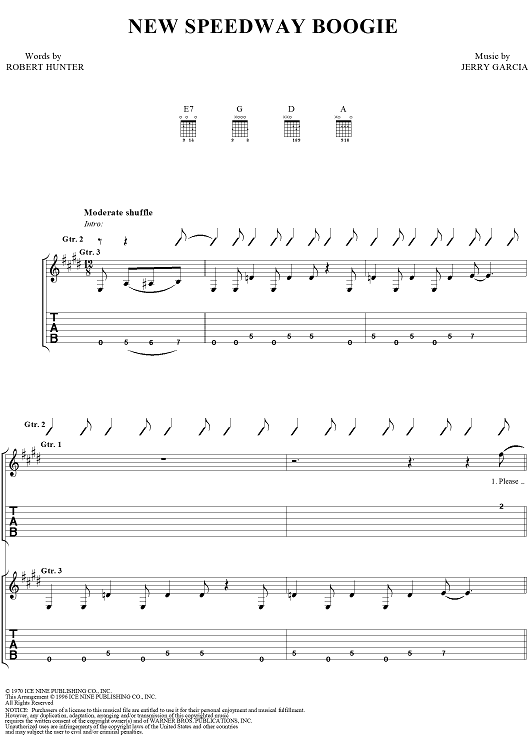 "New Speedway Boogie" Sheet Music by Grateful Dead