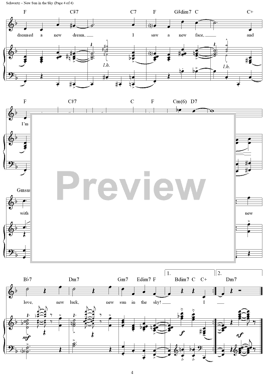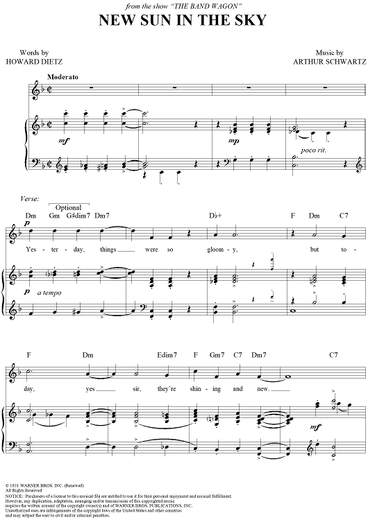 Digital Sheet Music for New Sun in the Sky by Howard Dietz, Arthur Schwartz scored for Piano/Vocal/Chords; id:259473