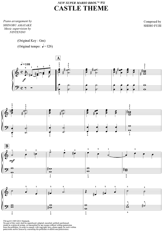 "New Super Mario Bros. Wii™: Castle Theme" Sheet Music by Shiho Fujii