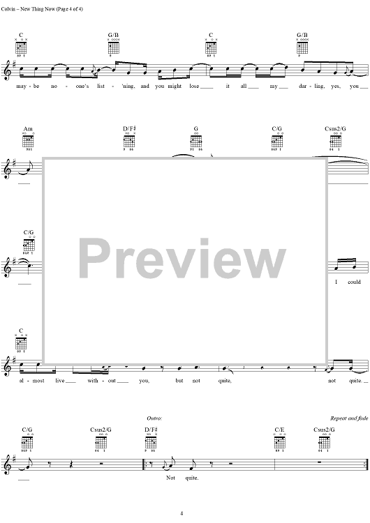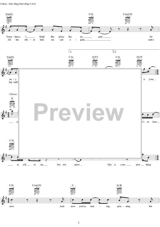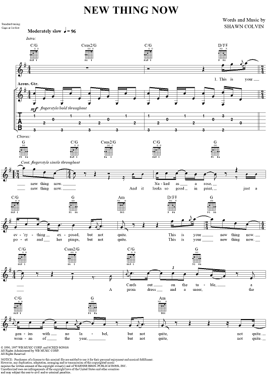 Digital Sheet Music for New Thing Now by Shawn Colvin scored for Easy Guitar Tab/Vocal; id:236040