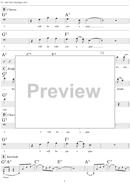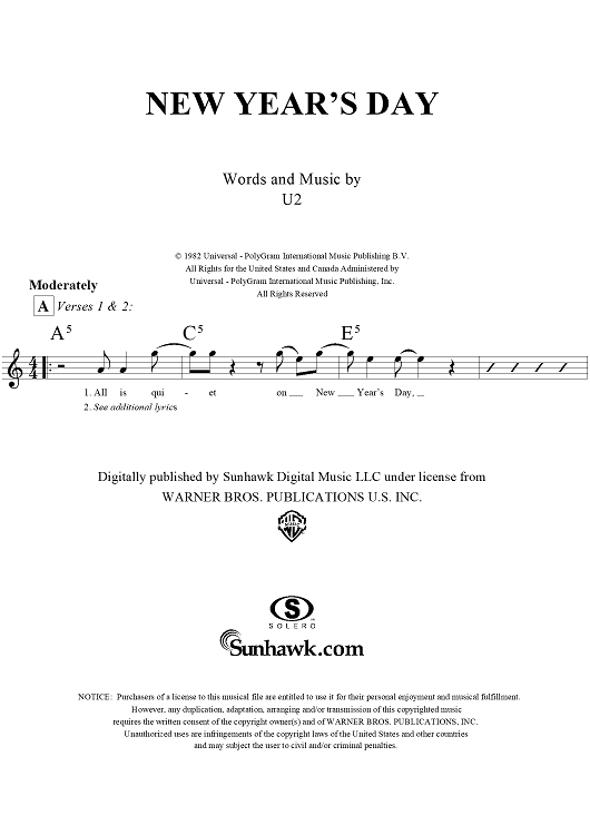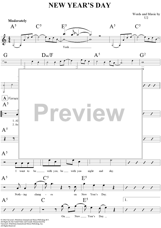 Digital Sheet Music for New Year's Day by U2 scored for Lead Sheet; id:294014