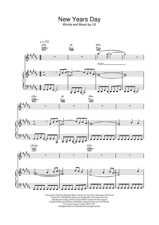 Digital Sheet Music for New Years Day by U2 scored for Piano/Vocal/Chords; id:378788
