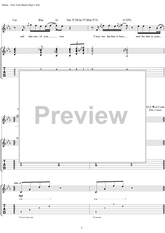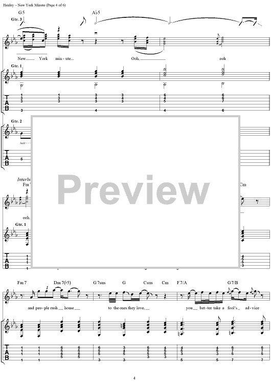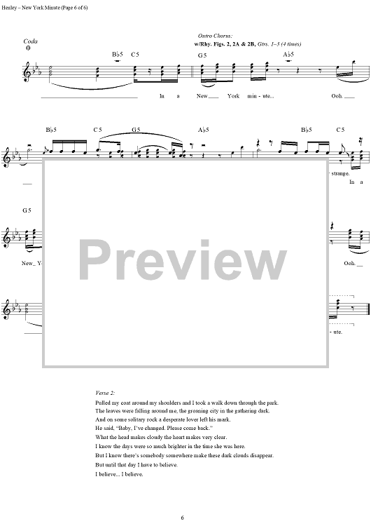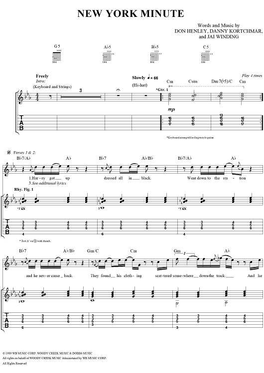 "New York Minute" Sheet Music by Eagles