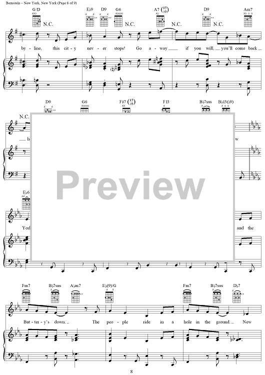 Digital Sheet Music for New York, New York by Michael Feinstein, Leonard Bernstein, Betty Comden, Adolph Green scored for Piano/Vocal/Chords; id:284566