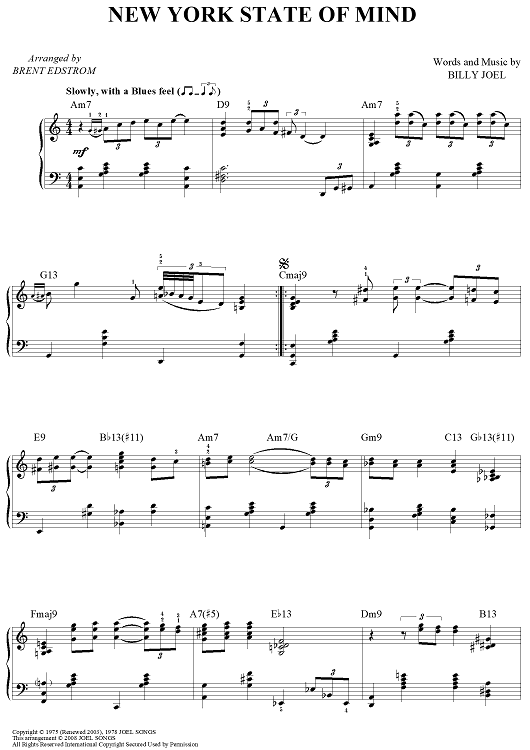 Digital Sheet Music for New York State of Mind by Billy Joel, Brent Edstrom scored for Piano Solo; id:460613