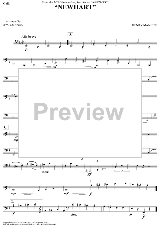 "Newhart - Cello" Sheet Music by Henry Mancini