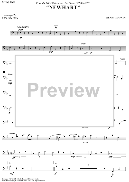 "Newhart - String Bass" Sheet Music by Henry Mancini