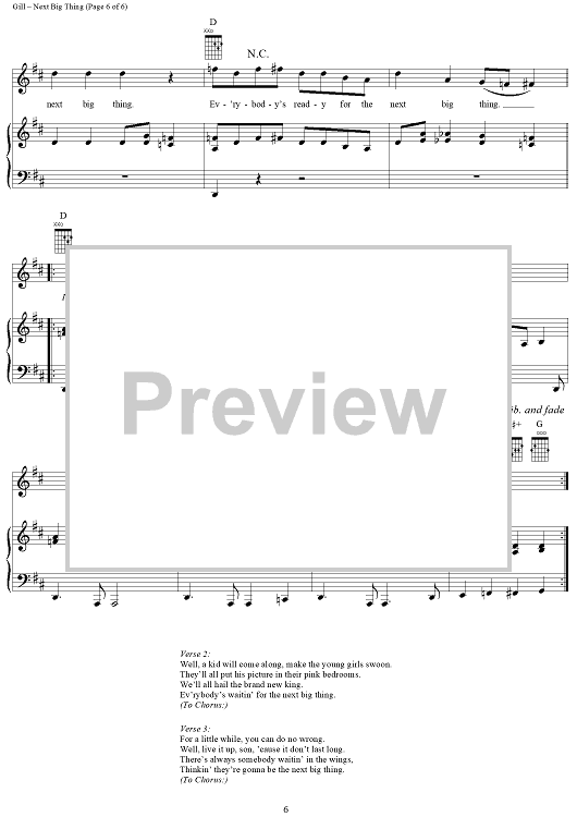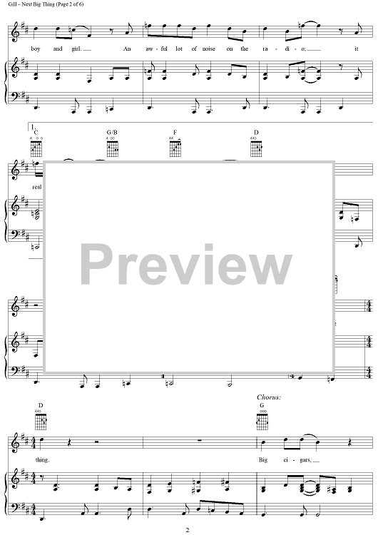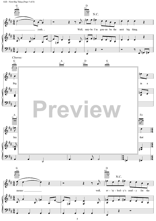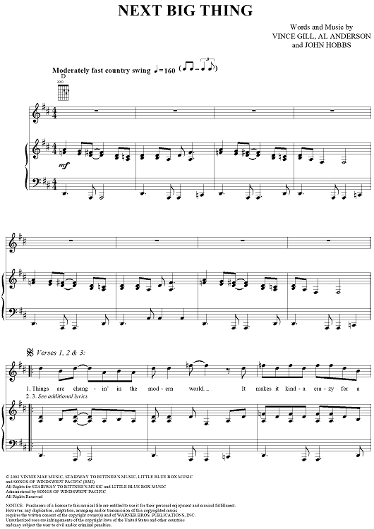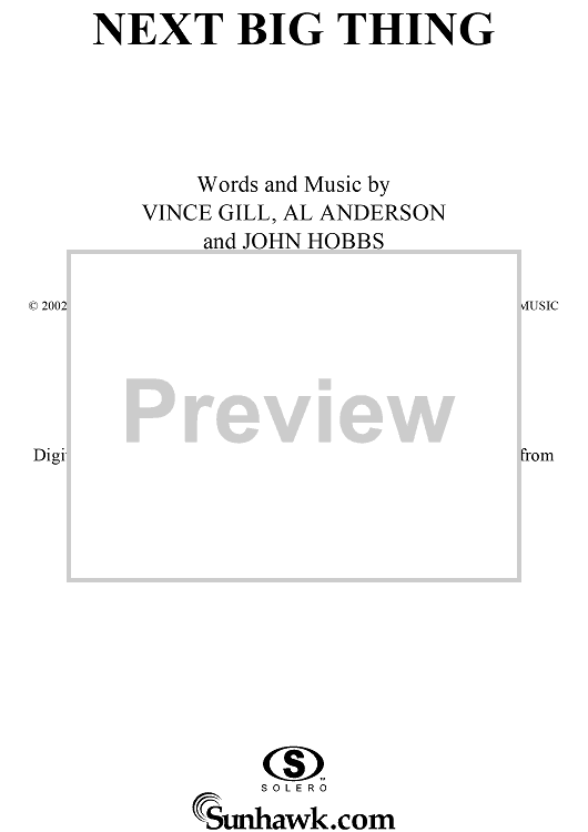 Digital Sheet Music for Next Big Thing by Vince Gill, Al Anderson, John Hobbs scored for Piano/Vocal/Chords; id:294048