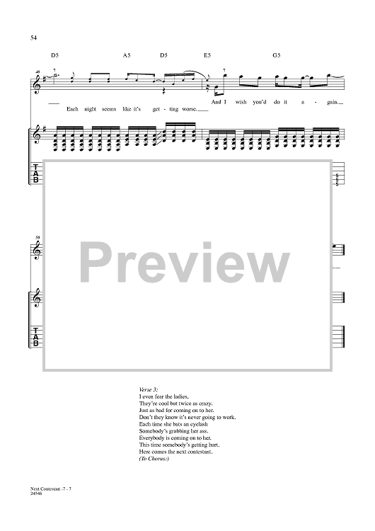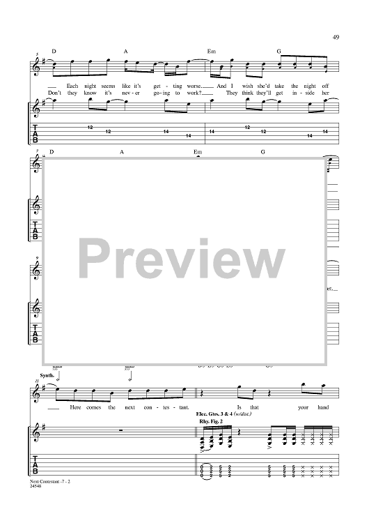 Digital Sheet Music for Next Contestant by Nickelback, Chad Kroeger scored for Guitar Tab/Vocal; id:357723