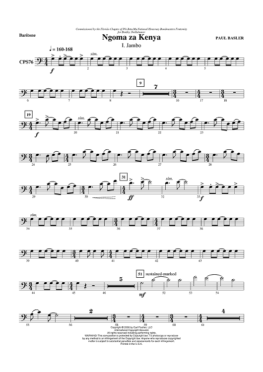 Digital Sheet Music for Ngoma za Kenya - Baritone by Paul Basler scored for Concert Band; id:408712